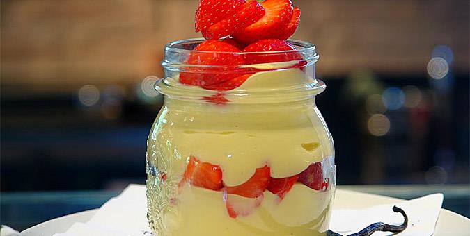Strawberry & Cream Φρέσκιες φράουλες μαζί με αφράτη crème patisserie με βανίλια Μαδαγασκάρης.