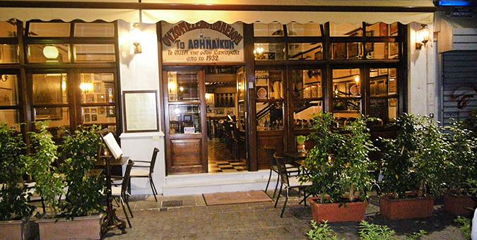 Αθηναϊκόν Θεμιστοκλέους 2, Ομόνοια, τηλ: 210 3838485 Ένα ακόμα θρυλικό ψαρο-φαγο-ποτείο, το Αθηναϊκόν διατηρεί ολοζώντανη την ατμόσφαιρα παλιάς Αθήνας και την νοστιμιά της κουζίνας του, σε μια από τις «δύσκολες» γειτονιές του κέντρου. Σερβίρει υπέροχα μύδια σαγανάκι, ψητό καλαμάρι, νοστιμότατο γαριδάκι συμιακό, φρέσκο καραβιδάκι και καραβιδοκεφτέδες, τηγανιτό μπακαλιάρο και… ξιφία σουβλάκι, μεταξύ άλλων λαχταριστών ψαρο-εδεσμάτων. Ο σιμιγδαλένιος χαλβάς στο τέλος έρχεται κερασμένος, και ο λογαριασμός κυμαίνεται στα 20€ το άτομο με ουζάκι.