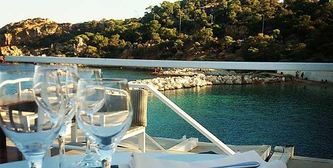 Moorings Μαρίνα Βουλιαγμένης, τηλ: 210 9670659 Η εκπληκτική θέα… συνεχίζεται στο Moorings, ένα all day café bar restaurant που ατενίζει το απέραντο γαλάζιο σε έναν μικρό κολπίσκο και η ατμόσφαιρά του θυμίζει κάτι από κατάστρωμα πλοίου – χωρίς το κούνημα. Θα περίμενε κανείς με τέτοια θέα το φαγητό να υστερεί, όμως το Moorings έχει δώσει ιδιαίτερη έμφαση και στις γεύσεις του, με το μενού να κάνει πέρασμα από αρκετές διεθνείς κουζίνες με επίκεντρο τα θαλασσινά και το κρέας: μαύρες ταλιατέλες με καραβίδες, τρυφερό καρπάτσιο μοσχαριού, τυροκροκέτες με μαρμελάδα ροδάκινο, πουγκιά με γαρίδες και κρέμα τυριού και φιλέτο με μανιτάρια και τρούφα είναι μερικά από τα αγαπημένα μας πιάτα. Για ένα πλήρες γεύμα, θα πληρώσετε περί τα 40€ ανά άτομο.