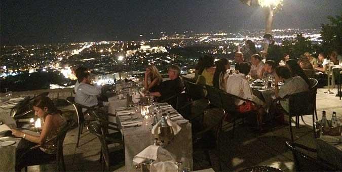 Ορίζοντες Λόφος Λυκαβηττού, τηλ: 210 7227065, 210 7210701 Στην κορυφή του Λυκαβηττού, οι Ορίζοντες είναι το “place to be” για όσους αναζητούν ένα εστιατόριο ώστε να απολαύσουν δείπνο για δύο με την εκπληκτική θέα της Αθήνας στο πιάτο. Η κουζίνα τους υπέστη ανανέωση και πλέον σερβίρει μοντέρνες ελληνικές γεύσεις, οι οποίες είναι εύστοχες και άκρως ελκυστικές για τον ουρανίσκο μας. Τα αχνιστά μύδια σε κρασί chardonnay ξεκινούν άψογα το γεύμα μας, το οποίο συνεχίζεται με μια σαλάτα σταμναγκαθίου με πράσινο μήλο και ραπανάκια. Στα κυρίως, το γιουβετσάκι θαλασσινών σβησμένο με κονιάκ είναι εξαιρετικό, όπως επίσης και το χοιρινό κότσι με κρούστα αρωματικών και σπιτικές πατάτες, για τους λάτρεις της κρεατοφαγίας. Αν αντέξετε, προσθέτετε και κάποιο από τα ενδιαφέροντα επιδόρπια. Εμείς δοκιμάσαμε την τάρτα σοκολάτας µε µπαχαρικά, βερίκοκο και σάλτσα ελληνικού καφέ και μείναμε απόλυτα ικανοποιημένοι. Συνοδεία ενός κρασιού, ο λογαριασμός θα κυμανθεί στα 40€-50€ ανά άτομο. Σημειώστε ότι οι Ορίζοντες σερβίρουν και οικονομικά σετ μενού, με 23€ ανά άτομο, με ένα ποτήρι κρασί, τα οποία μπορείτε να δείτε εδώ.