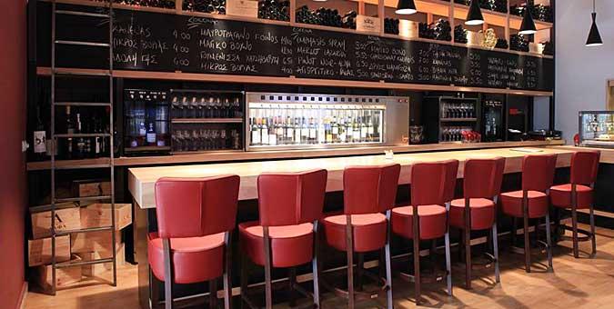 By the glass Φιλελλήνων και Γεωργίου Σουρή 3, τηλ.: 210 3232560 Αυτό το όμορφο wine bar στη Στοά Ράλλη, μια ανάσα από το Σύνταγμα απλώνει τα τραπεζάκια του με φόντο τους ροζ τοίχους και το αίθριό του. Στην wine list θα βρείτε περίπου ογδόντα ετικέτες ελληνικών κρασιών, μεγάλο μέρος των οποίων σερβίρεται και σε ποτήρια τριών μεγεθών για να διαλέξετε πόσο θα πιείτε. Τα μεζεδάκια που συνοδεύουν τα ποτήρια σας αποτελούν από μόνα τους σοβαρό λόγο επίσκεψης: μην χάσετε για κανένα λόγο τα ντακάκια με ντομάτα, πέστο και κάπαρη, τα φιλετίνια κοτόπουλο και τα μπιφτεκάκια με χειροποίητη μουστάρδα. Οι τιμές για το ποτήρι κρασί ξεκινούν από 3,50€, ενώ τα περισσότερα μεζεδάκια κυμαίνονται στα 5-6€.