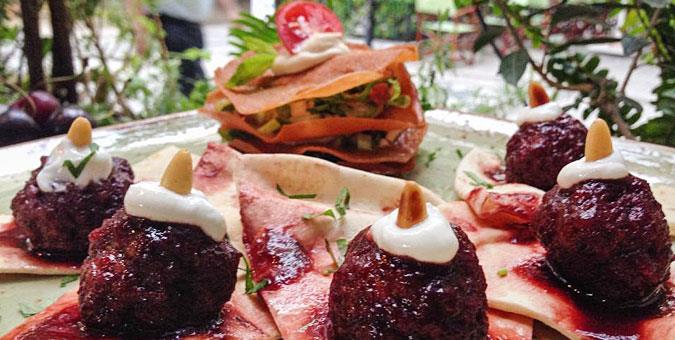 Rock and Balls Βασιλικής 2 και Πλ. Αγ. Ειρήνης, τηλ: 210 3211112 Λαμπερό και βιομηχανικό ταυτόχρονα, στεγασμένο στο περίφημο –και τεράστιο– Γκρι Κτίριο της Πλατείας, το Rock & Balls… ροκάρει στις μουσικές του και παράλληλα σερβίρει κορυφαία κεφτεδάκια στα μεγάλα στρογγυλά τραπέζια του. Στο ανανεωμένο meatball menu την τιμητική τους έχουν οι φουρνιστοί κεφτέδες πέντε ειδών: Κλασικοί, chicken chili, smoked paprika beef, pork chorizo και vegetarian. Τους συνδυάζετε με την σάλτσα που θέλετε (ντομάτα, creamy blue cheese, καπνιστή παρμεζάνα, barbecue, mushroom gravy ή tartar) και προσθέτετε γαρνιτούρα : Πατάτες bravas, λαχανικά στον ατμό, σουφλέ μανιταριών, κους κους, καραμελωμένο λάχανο-μπέικον, ριγγατόνι ή λιγκουίνι. Συνοδεύστε με μπύρα ή κοκτέιλ και υπολογίστε περί τα 18€ κατ’ άτομο.
