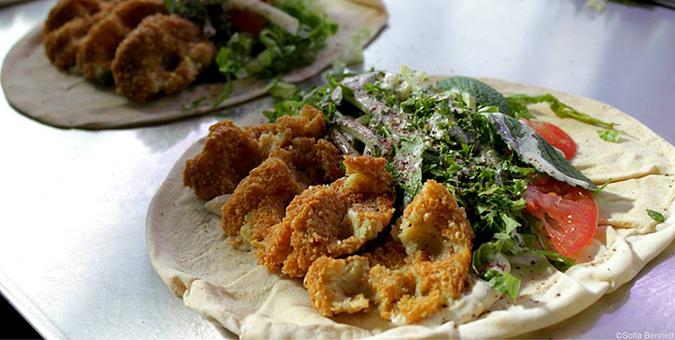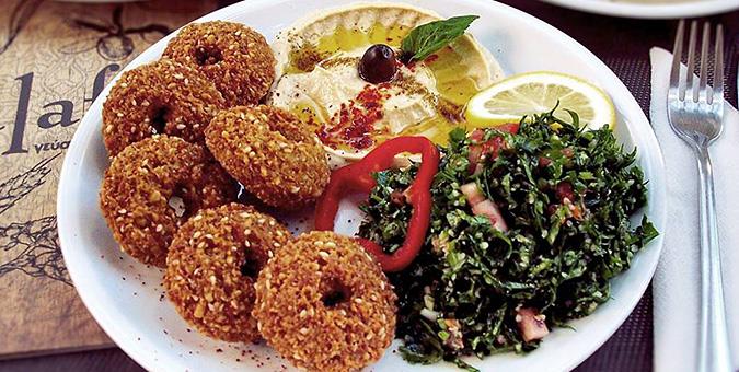 Φαλάφελ Γεύσεις Ανατολής Γράμμου 1, Καλλιθέα, τηλ: 2109595095 Εδώ τα φαλάφελ και η ανατολίτικη κουζίνα απολαμβάνονται όχι στα όρθια, αλλά σε έναν όμορφο, παρεΐστικο χώρο, που θα σας μυήσει στα μυστικά καινούριων γεύσεων: Πέρα από το φαλάφελ σε πίτα (2€) ή σε σκεπαστή (4€), θα βρείτε επίσης μπαμάλ (ψημένες μελιτζάνες με σκόρδο, γιαούρτι, κιμά, μαϊντανό και κουκουνάρι), λάμπνε (στραγγιστό γιαούρτι με δυόσμο), μουχάμαρα (σάλτσα από γλυκιά και καυτερή πιπεριά), φουλ μπελ ζέιτ (κουκιά με σος), μπουργολ (ψιλοκομμένη μελιτζάνα, πλιγούρι, ντομάτα και κρεμμύδι), πίτα Μαρίνα με μοσχαρίσιο κιμά, κεμπάπ, σις ταούκ, κουπέ (συριακή συνταγή με κιμά, πλιγούρι και μυρωδικά τυλιγμένο με ζύμη) και μοταμπάκα (μελιτζάνα, πιπεριά, κρεμμύδι και ντομάτα). Οι τιμές των πιάτων κυμαίνονται στα 4-6€.