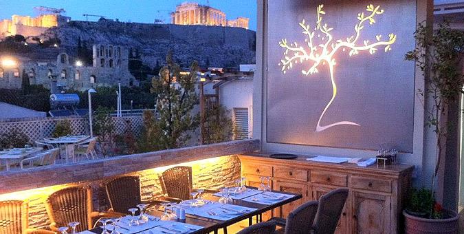 Ελαία Ερεχθέως 16 και Ερωτοκρίτου, Πλάκα, τηλ: 210 3249512 Διαθέτει την ωραιότερη ίσως θέα ολόκληρης της Πλάκας, για την οποία και μόνο θα μπορούσαμε να του συγχωρέσουμε τις τσιμπημένες τιμές και τις μάλλον τουριστικές γεύσεις που άλλωστε... μαστίζουν ολόκληρη την γειτονιά. Άλλωστε, έχουμε πάντα την επιλογή να παραγγείλουμε κρασί και μεζεδάκι, για να ρομαντζάρουμε στην ταράτσα του νεοκλασικού όπου η Μελίνα «ξελόγιασε» τον Ζιλ Ντασέν, αφήνοντας το βλέμμα να ταξιδέψει από τα πολύχρωμα νεοκλασικά της Πλάκας ως τον Λυκαβηττό. Από Πέμπτη έως Σάββατο βράδυ, και τα κυριακάτικα μεσημέρια, η ζωντανή μουσική προσθέτει λίγο ακόμα folklore στο περιβάλλον παλιάς Αθήνας. Οι τιμές, αν επιμένετε για πλήρες γεύμα, κυμαίνονται στα 30-35€ το άτομο, χωρίς κρασί.