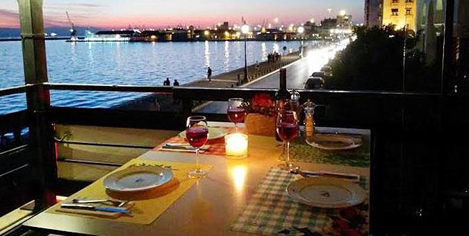 Πιάνουμε τραπέζι μπροστά στη θάλασσα της Θεσσαλονίκης και απολαμβάνουμε ελληνικούς μεζέδες και ψαράκι εκεί που σκάει το κύμα του Θερμαϊκού.
