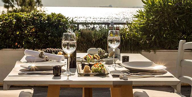 Thymare Sea Food Λεωφ. Μεγάλου Αλεξάνδρου 2, τηλ: 2310897197 Αγνά υλικά της θάλασσας και ευφάνταστα «παντρέματά» τους απολαμβάνουμε στον κομψό, ρομαντικό χώρο του εστιατορίου του Μακεδονία Palace, ακριβώς μπροστά στην παραλιακή περαντζάδα. Εδώ θα δοκιμάσετε εξεζητημένες γεύσεις, όπως λαυράκι γεμιστό με καλαμάρι, κινόα και σαμπαγιόν εσπεριδοειδών ή sushi rolls. Αυτό το καλοκαίρι, «τρέχει» και set menu των 20€, που περιλαμβάνει ανάμεικτη σαλάτα με κεφτεδάκια από γαύρο και ντοματίνια Σαντορίνης, ζουμερό σολομό με κρούστα θυμαριού ή σπαγγέτι με όστρακα, cheesecake μοσχολέμονου, φράουλας και μέντας και ένα ποτήρι κρασί.