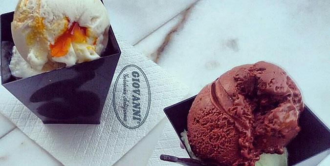 Giovanni: Tο παγωτό αυτής της gelateria φτιάχνεται μπροστά στα μάτια σας και είναι ολόφρεσκο και λαχταριστό. Δοκιμάστε οπωσδήποτε παγωτό προφιτερόλ με ολόκληρα choux μέσα, spagnola με βύσσινο, κρέμα με variegate από φρεσκοψημένα φουντούκια και φοβερή stracciatella με κομματάκια γνήσιας κουβερτούρας.