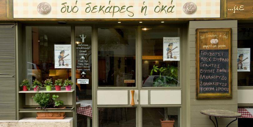 Δυο Δεκάρες η Οκά Ζίννη 29-31, Κουκάκι, τηλ: 2109220583 Νέο αγαπημένο παρεΐστικο σημείο συνάντησης στο Κουκάκι, το ελληνικό αυτό μεζεδοπωλείο δεν τσιγκουνεύεται την νοσταλγική ατμόσφαιρα. Πέρα από την ωραία διακόσμηση με τις παλιές αφίσες, το ραδιόφωνο-αντίκα και τις ρετρό ταμπέλες, φροντίζει να μας «γυρνά πίσω» με τα live ρεμπέτικα κάθε Σαββατοκύριακο. Στα του φαγητού, απολαμβάνουμε μαγειρευτά, από σουπιές και γιουβέτσι μέχρι σπανακόρυζο και στιφάδο, αλλά και πιάτα ζυμαρικών, κρητικούς μεζέδες και ωραίο χύμα ρακί ή «κρασί της οκάς». Υπολογίστε περί τα 12-15€ κατ’ άτομο.