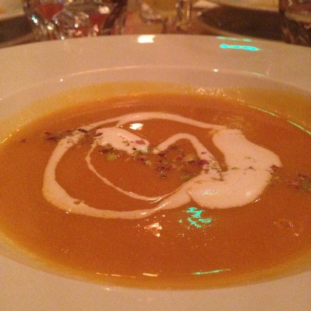 Μοντέρνα και δημιουργική η σούπα στο Θείο Τραγί με γλυκοπατάτα, σέλινο ρίζα, φυστίκι αιγίνης, ταπιόκα και κρέμα wasabi, εντυπωσιάζει με τα αρώματα και τις γεύσεις που αναδύονται σε κάθε κουταλιά.