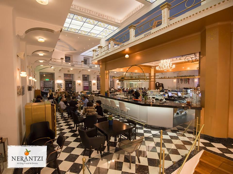 Νεράτζι Μητροπόλεως 72, Αθήνα, 210 3315882 Στο νεοκλασικό κτίριο που τις περασμένες δεκαετίες στέγαζε τους νεωτερισμούς Παπασπυρόπουλου, ένα Νεράτζι “άνθισε” διατηρώντας τις όμορφες λεπτομέρειες με τα λευκά γύψινα, τις τοιχογραφίες και τα βιτρό και αποπνέοντας αέρα αρχοντιάς και φινέτσας. Σε κάποια από τις vintage τραπεζαρίες της σάλας με την σκακιέρα στο πάτωμα, απολαμβάνουμε μεσογειακή κουζίνα με ενδιαφέρουσες προτάσεις όπως κότσι από μοσχάρι με κρέμα πατάτας και σάλτσα με κόκκινο κρασί, μπριζόλα από μοσχάρι γάλακτος με πατάτες φοντάν, φοντύ από κρεμμύδια με ξύδι και σάλτσα κρασιού, βιολογικό κοτόπουλο αργοψημένο με σελινόριζα, σπανάκι και μανιτάρια και ωραιότατη πίτσα Di Buffala με λεπτή, νόστιμη ζύμη, σάλτσα ντομάτας, μοτσαρέλα και βασιλικό. Εξαιρετικό το προφιτερόλ με πικρή σοκολάτα και καβουρδισμένα αμύγδαλα για τελείωμα. Συνοδεία κρασιού σε ποτήρι, ένα πλήρες γεύμα θα σας κοστίσει 30€ κατ' άτομο.