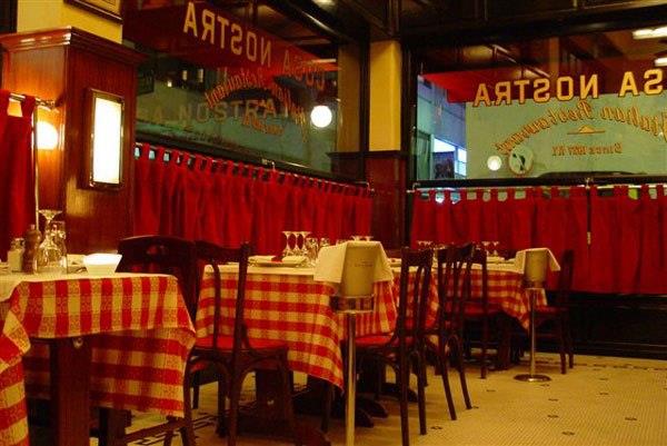 Cosa Nostra Αγίας Θέκλας 5, Ψυρρή, τηλ: 2103310900 Μια ιταλική τρατορία που θα μπορούσε κάλλιστα να σταθεί στην καρδιά του Σικάγο ή της Νέας Υόρκης προτιμά… Μοναστηράκι και μας υποδέχεται στον κινηματογραφικά στημένο εσωτερικό της χώρο, με τα ασπρόμαυρα πλακάκια, τον χαμηλό φωτισμό και τα ξύλινα τραπέζια για να μας φιλέψει αυθεντική ιταλιάνικη κουζίνα. Με μουσικές από Φρανκ Σινάτρα, Ντην Μάρτιν, Pink Martini κ.α. απολαμβάνουμε λαχταριστή πίτσα τέσσερα τυριά, με μοτσαρέλα, ταλέτζιο, παρμεζάνα και γκορκοντζόλα σε λεπτή ζύμη, όπως αρμόζει, τάρτα με γέμιση πάπιας και μασκαρπόνε, σαλάτα με βουβαλίσια μοτσαρέλα και μαριναρισμένες ντομάτες κα φυσικά ωραιότατες pasta με φρέσκα ζυμαρικά, όπως τα ραβιόλια με πορτσίνι και λευκή σος με νότες κρασιού. Μην αμελήσετε να παραγγείλετε και επιδόρπιο, το τιραμισού, για παράδειγμα, είναι εξαιρετικό. Με κερασμένο λιμοντσέλο στο τέλος, όπως πρέπει, και ποτήρι κρασί υπολογίστε ότι θα πληρώσετε περί τα 30€ το άτομο, για ένα πλήρες γεύμα.