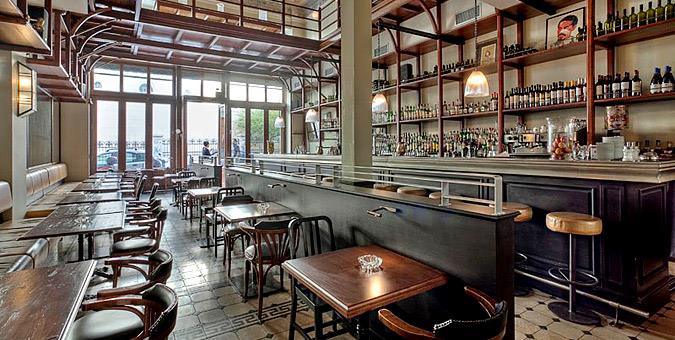 Στο φαρδύ πεζοδρόμιο έξω από τις τεράστιες τζαμένιες πόρτες του απλώνει λίγα τραπεζάκια, στα οποία σερβίρει τα «ψαγμένα» του κοκτέιλ διά χειρός Γιάννη Κοροβέση, λαχταριστά σνακ όπως τα αυθεντικά γαλλικά croc monsieur, και πιάτα ημέρας όπως τηγανητό μπακαλιάρο σε κουρκούτι μπίρας με πατάτες ή ψητό φιλέτο κοτόπουλου με φασκόμηλο. Πολύ ιδιαίτερα είναι και τα κοκτέιλ χωρίς αλκοόλ, όπως η σπιτική λεμονάδα που σερβίρεται με δυόσμο και σόδα. Μοναδική μας ένσταση είναι ότι, τόσο μέσα όσο και έξω, οι ωραίες jazz-funk μουσικές του παίζουν τόσο χαμηλά (θέλοντας ίσως να προτείνουν μια καλή εναλλακτική στα ντεσιμπέλ της υπόλοιπης πλατείας;) που τις περισσότερες ώρες δεν ακούγονται πάνω από τις συζητήσεις. Θα το βρείτε ανοιχτό όλη μέρα και (σχεδόν) όλη νύχτα, για καφέ, φαγητό και ποτό. Τα κοκτέιλ κυμαίνονται από 9€ έως 11€, ενώ για να τσιμπολογήσετε, τα μεσημεριανά set menu ξεκινούν από 11€ το άτομο.
