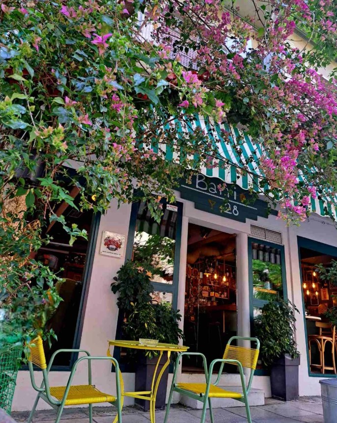 Χρωματιστό και γλυκύτατο, γεμάτο έργα τέχνης στους τοίχους του, μαξιλαράκια σε πολυθρόνες και ξύλινους πάγκους, ατμοσφαιρικούς φωτισμούς όσο πέφτει το σκοτάδι και άπλετο φως από τις τζαμαρίες του τις υπόλοιπες ώρες. Το Barrio 28 είναι café, είναι και μπαρ, ανοίγει κάθε μέρα από τις 8.00 το πρωί (τα ΣΚ από τις 9.00) και το τραβά μέχρι τη 1.00. Έχει νόστιμα μπαρ-ο-τσιμπολογήματα σαν το μπέργκερ και τα καλοφτιαγμένα σάντουιτς αν έρθεις πεινασμένος/η, μπύρες από ελληνικές μικροζυθοποιίες και ψαγμένες επιλογές σε ρούμια και ουίσκια για αργότερα. Το απλό ποτό στα 7€.