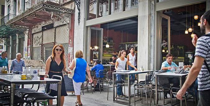 Ώρα για φαγητό: Επιστρέφουμε στην πλατεία Αγίας Ειρήνης και πιάνουμε τραπέζι στο «Μάνας Κουζίνα-Κουζίνα» (Αιόλου 27). Το όνομα του νέου μαγειρείου της πιάτσας παραπέμπει ευθέως σε μαμαδίσιες γεύσεις που απειλούνται με εξαφάνιση και δεν λέει ψέματα: Δοκιμάσαμε λαχταριστό παστίτσιο με αφράτη μπεσαμέλ, μουσακά με φύλλο, ψημένο σε πήλινο σκεύος και νοστιμότατες σαλάτες φακής και κους-κους. Η φιλοσοφία είναι αντίστοιχη με τον εξαρχειώτικο Κυματοθραύστη: Υπάρχει ένας self-service μπουφές χωρισμένος σε κυρίως πιάτα και σαλάτες και μπορείτε να διαλέξετε μεσαίο πιάτο (στο οποίο θα βάλετε ένα κυρίως και μία σαλάτα) ή μεγάλο πιάτο (για δύο κυρίως και μία σαλάτα) και θα πληρώσετε 5€ και 7,80€ αντίστοιχα. Συνδυάστε το με το ωραίο χύμα κρασί ή το αμοργιανό ρακόμελο ή οινόμελο, και θα έχετε ένα μαμαδίσιο γεύμα με λιγότερα από 10€ κατ’ άτομο.