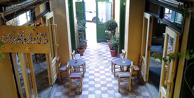 Κεραμείο Πλαταιών 27, Κεραμεικός, τηλ: 210 3464223 Χτιστά καναπεδάκια, τραπέζια φτιαγμένα από κορμούς δέντρων, φυλλωσιές και περίεργα industrial φωτιστικά. Η αυλή του παλιού εργαστηρίου κεραμοποιίας (ενός από τα πολλά που έδωσαν το όνομά τους στη γειτονιά) είναι μια από τις παλαιότερες, και πιο κοσμαγάπητες, αυλές του κέντρου –αυτό πρακτικά σημαίνει ότι ίσως χρειαστεί να στριμωχτείτε λίγο σε ώρες και νύχτες αιχμής. Η μέρα εδώ ξεκινά με καφέ (1,50-2,50€), συνεχίζει με ρακόμελο ή κρασί (από 3€) και καταλήγει με ποτά ή κοκτέιλ (6 και 7€ αντίστοιχα), συνδυασμένα με τζαζ και ροκ μουσικές. Τι άλλο να θέλει κανείς;