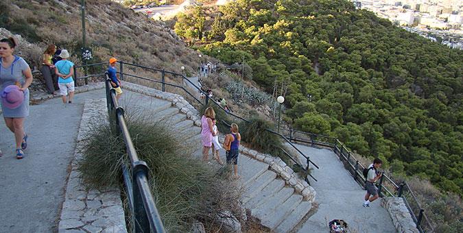 Όσο ο ήλιος πλησιάζει προς τη δύση του, ο κόσμος αυξάνεται και πάλι: Οικογένειες με πιτσιρίκια, παρέες με μπύρες, ζευγαράκια που σκαρφαλώνουν πιασμένα χέρι-χέρι το προσοχή-ολισθηρό-δάπεδο μέχρι το εκκλησάκι του Αγίου Γεωργίου, πάνω στην ώρα για το ηλιοβασίλεμα –που ειρήσθω εν παρόδω είναι ένα από τα καλύτερα της πόλης. Και τουρίστες, πολλοί τουρίστες, που ποιος ξέρει πώς ανέβηκαν εδώ πάνω (τι εννοείς με τα πόδια; στους 38 βαθμούς Κελσίου;) και βάλθηκαν να εξερευνούν τα πευκοσκέπαστα χωμάτινα μονοπάτια του λόφου. Αν δεν ξέρετε ότι ο Λυκαβηττός είναι γεμάτος τέτοια μονοπάτια, μάλλον δεν έχετε ανέβει ποτέ μέρα στην κορυφή του. Και τώρα που το σκεφτόμαστε, έχουμε και άλλα…