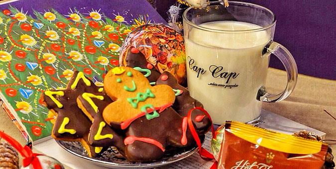 Cap Cap Πανόρμου 26, Αιγάλεω, τηλ: 2105904116 Σαν να μην είναι αρκετά παραμυθένιο την υπόλοιπη χρονιά, το Cap Cap από τα μέσα Νοεμβρίου μέχρι το τέλος των γιορτών δημιουργεί ένα ακόμη πιο ονειρεμένο σκηνικό για να απολαύσουμε ζεστά ροφήματα και υπέροχα cupcakes και γλυκίσματα. Από τα κάγκελα του πάνω ορόφου μέχρι το δέντρο του ισογείου, «πάγος» και χιόνι μεταμορφώνουν τη σάλα σε σκηνικό… «Frozen», ενώ από την οροφή κρέμονται νιφάδες και χιονόμπαλες. Φυσικά, η χριστουγεννιάτικη αίσθηση μεταφέρεται και στα γλυκά του Cap Cap, όπως τα cupcakes-έλατα ή αυτά με τον σοκολατένιο Άι Βασίλη, τα Santa Treats (μπισκότα με γάλα), το Buttered Rum, το Fireplace cake βανίλιας με καστανή ζάχαρη, γλυκά μήλα, κρέμα τυρί και ρευστή καραμέλα, το ιταλικό πανετόνε και το οικογενειακό ψωμάκι σοκολάτας και πραλίνας διακοσμημένο με γκι.