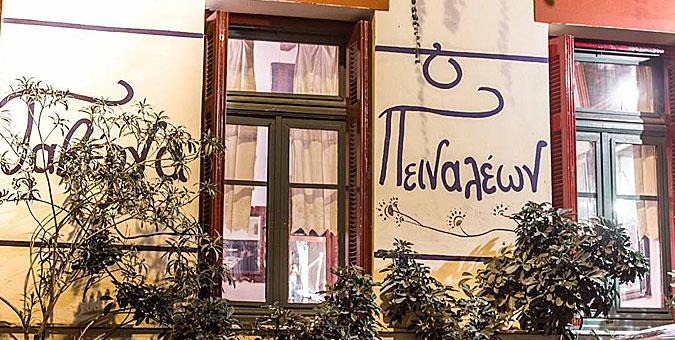 Πειναλέων Μαυρομιχάλη 152, τηλ: 2106440945 Στη νοσταλγική μονοκατοικία του Πειναλέοντα, θα πιάσετε τραπέζι στη σάλα με τα παλιά κάδρα και τις αφίσες, θα δοκιμάσετε κλασικές μερακλίδικες γεύσεις, από πανσέτα φούρνου μέχρι χορταστικό αχνιστό κότσι και κόκορα κρασάτο, αλλά και πιο «πειραγμένες» ελληνικές γεύσεις όπως χοιρινό με μαστίχα. Τα πιάτα συνοδεύονται από ρύζι, πατάτες, αρωματικό πλιγούρι ή πουρέ – υπολογίστε περί τα 15-18€ κατ’ άτομο με κρασάκι. Σημειώστε ότι θα πετύχετε live μουσική τις Τετάρτες, ενώ τις Κυριακές θα βρείτε τον Πειναλέοντα ανοιχτό και το μεσημέρι.
