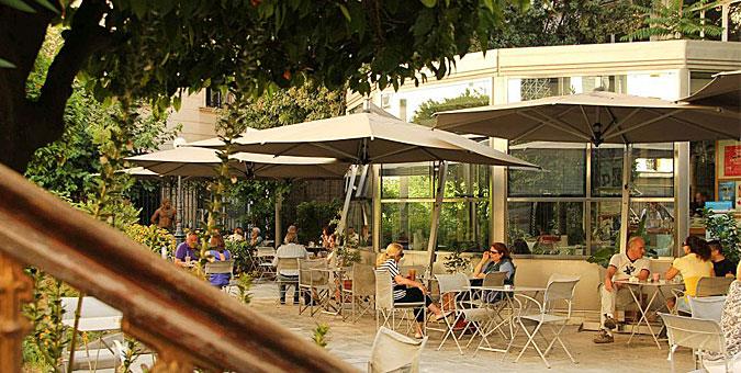 Στον Κήπο της ΕΠΑΣΚΤ Πανός 19, Πλάκα Άλλη μια υπέροχη αυλίτσα, κρυμμένη ανάμεσα στα καταστήματα με σουβενίρ της Πλάκας, με χτιστά καναπεδάκια, χώμα κάτω από τα πόδια μας, πανύψηλα δέντρα να προσφέρουν απλόχερα την σκιά τους και οικονομικά καφεδάκια (στα 2,50€).