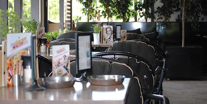 Toms Café Τσιμισκή 22, Στοά Πελοσώφ Εκεί που κάποτε βρισκόταν το Ταχυδρομείο της Θεσσαλονίκης, τώρα κρύβεται το μικρό μποέμ αίθριο του καταστήματος Toms. Περισσότερο γνωστή για τα παπούτσια της, η εταιρία λειτουργεί και μερικά café ανά τον κόσμο – στην Ευρώπη υπάρχουν μόνο στο Άμστερνταμ και στη Θεσσαλονίκη – όπου σερβίρεται ο ειδικός καφές Toms, πάντα με φιλανθρωπικό χαρακτήρα. Σε παρόμοια λογική με τα παπούτσια, κάθε πώληση καφέ αντιστοιχεί σε πόσιμο νερό για ανθρώπους που το έχουν ανάγκη στην περιοχή παραγωγής του χαρμανιού. Ο χώρος διατηρεί ένα χαλαρό, hip ύφος και έχει μεταμορφώσει τη στοά σε όαση με δεντράκια, ξύλινους πάγκους και μαξιλάρες στο μωσαϊκό.
