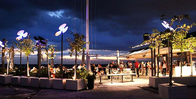 Mistral Seaside bar Τήνου 4, τηλ: 2310444845 Στον καλοκαιρινό χώρο του Mistral, ο interior designer Γιάννης Πραβινός έκανε ό,τι μπορούσε για να μας τηλεμεταφέρει σε νησί: Πλάκες ξύλου, γήινα χρώματα που «παίζουν» με το γαλάζιο της θάλασσας και violet pink φωτισμός το βράδυ, συνθέτουν ένα χώρο που λειτουργεί από τις 10 το πρωί για απολαυστικό καφεδάκι… seaside.