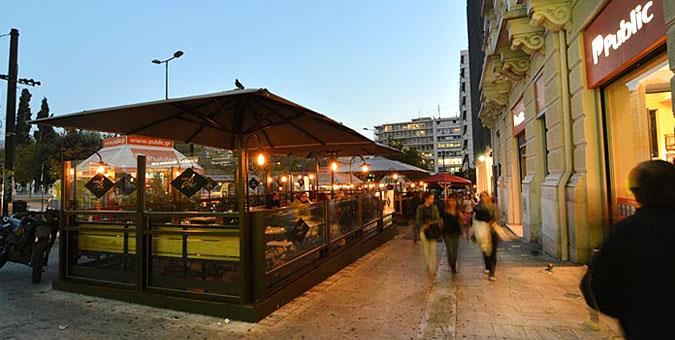 Public Café στο Σύνταγμα Κλασική αξία στο Σύνταγμα, το café στον τελευταίο όροφο του ιστορικού κτιρίου που φιλοξενεί το πολυκατάστημα Public βλέπει «φάτσα» την πλατεία Συντάγματος και το Κοινοβούλιο, το μοναδικό café που απολαμβάνει αυτό το προνόμιο – για ανεμπόδιστη θέα, επιλέξτε τραπεζάκι στο μπαλκόνι. Εναλλακτικά, πιάστε θέση σε κάποιο από τα τραπεζάκια που βγάζει στον πεζόδρομο μπροστά από την είσοδο και απολαύστε κοντινότερη θέα στην εμβληματική πλατεία της Αθήνας.
