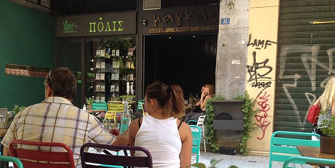 Μαγκαζέ Αιόλου 33, τηλ: 210 3243740 Το μοναδικό στέκι στις επάλξεις της Αιόλου, πολύ προτού γεννηθεί η πιάτσα της Αγίας Ειρήνης, το Μαγκαζέ συνεχίζει να αποτελεί το απόλυτο σημείο για καφεδάκι, ποτό, αλλά και φαγητό συνοδεία χαζιού στον πολυσύχναστο πεζόδρομο της Αιόλου. Το ανανεωμένο του μενού περιλαμβάνει κρύες γεύσεις όπως λαχταριστό club sandwich με πίτα, κοτόπουλο, πάπρικα και γιαούρτι με βότανα (7,30€), σαλάτα με κινόα και αβοκάντο (6,20€), αραβική πίτα με τόνο, πίκλες και καλαμπόκι (5,40€) και ζεστά πιάτα όπως πέννες με φρέσκια τομάτα, βασιλικό και παρμεζάνα (6,50€). Τα ποτά και τα cocktails ξεκινούν από 6€ και 8,50€ αντίστοιχα.