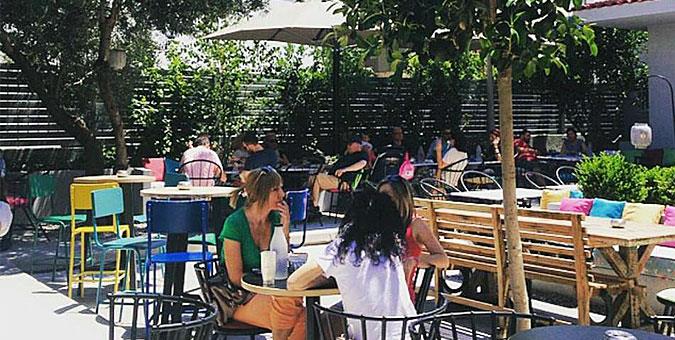 Momo Σαπφούς 95, Καλλιθέα, τηλ: 210 9562300 Μια από τις ωραιότερες, και πιο δροσερές αυλές της πόλης κρύβεται λίγο… off κέντρο, στην καλλιθεώτικη Πλατεία Κύπρου. Στον κήπο του Momo πιάνουμε τραπεζάκι στη σκιά των ψηλών δέντρων από νωρίς για ωραίο καφεδάκι Sant’Eustachio και πρωινό-μεσημεριανό με φανταστικά burgers σε ψωμάκι μπριος, σερβιρισμένα με πατατούλες φούρνου και σπιτική σαλάτα coleslaw, νόστιμα σάντουιτς, δροσερές σαλάτες, λαχταριστά macaroni’n’cheese και ιδιαίτερα haute dogs. Συνεχίζουμε απόγευμα ή βραδάκι με καλοφτιαγμένα κοκτέιλ, οι τιμές των οποίων κυμαίνονται στα 8€.