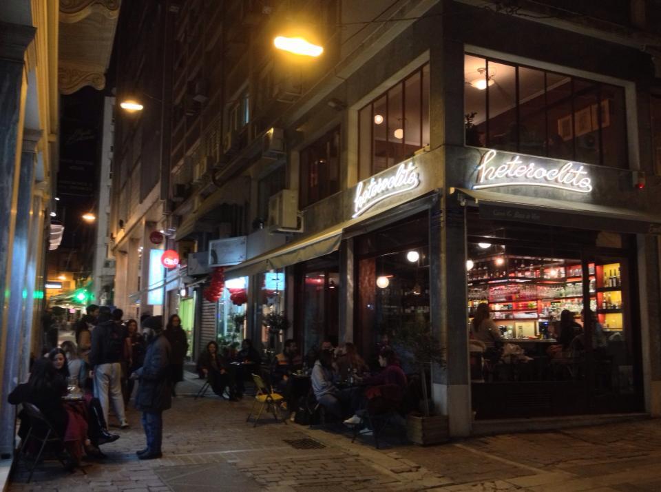 Heteroclito Φωκίωνος 2 & Πετράκη 30, τηλ.: 2103239406 Μια ανάσα από το Σύνταγμα και τη Μητρόπολη, στη γωνιά ενός μικρού πεζοδρόμου, κρύβεται το πιο χαλαρό, ατμοσφαιρικό και funky wine bar του κέντρου. Το Heteroclito σερβίρει δεκάδες διαφορετικές ετικέτες από τον ελληνικό αμπελώνα που συνεχώς ανανεώνονται, έχει φιλικούς ανθρώπους που μπορούν να σας εξηγήσουν τα πάντα για τον οίνο, και συνοδεύει το κρασί σας με πιατάκια ημέρας – στο σύνολο δεν θα ξοδέψετε πάνω από 8-10€ κατ’ άτομο. Σημειώστε ότι οι καπνίζοντες θα πρέπει να βολευτείτε στα έξω τραπεζάκια.