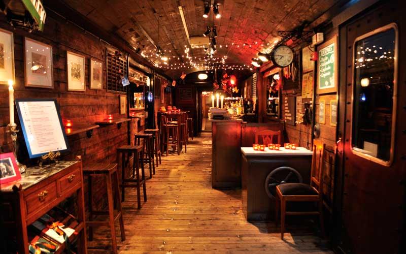 Τρένο στο Ρουφ Σιδ. Σταθμός Ρουφ, Λεωφ. Κωνσταντινουπόλεως, τηλ.: 2105298922 Σαν κομψοί αριστοκράτες του Μεσοπολέμου που παίρνουν το απεριτίφ τους στο ξύλινο βαγόνι του Orient Express. Έτσι θα νιώσετε στο βαγόνι μπαρ του Τρένου στο Ρουφ, του μοναδικού τρένου στον κόσμο που έχει μετατραπεί σε καλλιτεχνικό στέκι. Ο χαμηλός φωτισμός, οι τζαζ μουσικές (που συχνά είναι ζωντανές) και τα ωραιότατα κοκτέιλ (δοκιμάστε το κατάλληλα βαφτισμένο για την περίσταση Fantastic Boyfriend με βότκα, καρύδα, λάιμ και βατόμουρο ή το Train Within με τζιν, βατόμουρο, τζίντζερ και λικέρ πορτοκάλι) είναι ένα μέρος του παζλ της βραδιάς. Μπορείτε να το συμπληρώσετε με περισσότερα κομμάτια, όπως μία παράσταση στο θεατρικό βαγόνι ή, τις Κυριακές του Φεβρουαρίου, με μια ξενάγηση στην Ιστορία του τρένου (8€ με απεριτίφ).