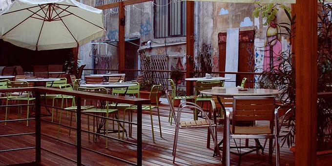 Στο μπαλκονάκι του Poems and Crimes (Αγίας Ειρήνης 17, τηλ: 210 3228839): Το κτίριο που στεγάζει τις εκδόσεις Γαβριηλίδη διαθέτει μια πίσω αυλή κατάλληλη για ρεμβασμό και διάβασμα, σε έναν χώρο που έχει το βιβλίο… στο DNA του. Άνετες πολυθρόνες κήπου, ξύλινη εξέδρα και θεά στα graffiti των γύρω παλιών κτιρίων του κέντρου είναι το σκηνικό που διαφέρει πολύ από τα δεδομένα της πιο πολύβουης πλέον πιάτσας της πόλης, της πλατείας Αγίας Ειρήνης η οποία απέχει ελάχιστα βήματα από εδώ.