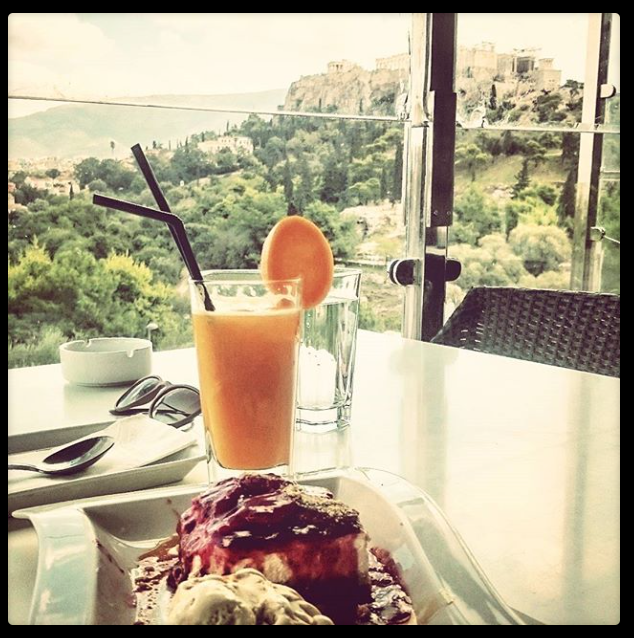 Είναι σίγουρα «τσιμπημένο», λόγω τοποθεσίας, αλλά για τον πρώτο καφέ ή το ποτό ενός πρώτου ραντεβού είναι ιδανικό σημείο: Εδώ, μαζί με τον καφέ ή το ποτό, θα ατενίσετε την Ακρόπολη και θα φάτε στο πιάτο… εκτός από τον Παρθενώνα, και τα κολασμένα γλυκά του καταλόγου (μιλφέιγ πορτοκαλιού, μπράουνι, lemon pie ή cheesecake με αφράτη κρέμα τυριών). Για καφέ και γλυκό υπολογίστε περί τα 10-15€.