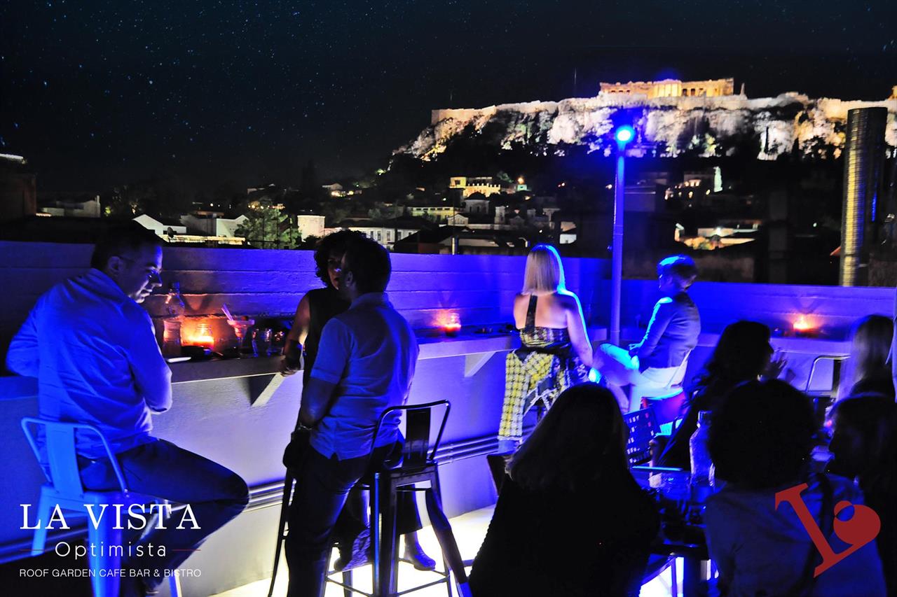 Το La Vista Optimista (Ερμού 95, Μοναστηράκι, τηλ: 2103250242) είναι η πιο φρέσκια άφιξη της ταρατσο-πιάτσας γύρω από το Μοναστηράκι. Έχει να υπερηφανεύεται, εκτός από αυτό που δηλώνει το όνομά του, και για τα σούπερ κοκτέιλ του, οι τιμές των οποίων κυμαίνονται στα 8-9€.