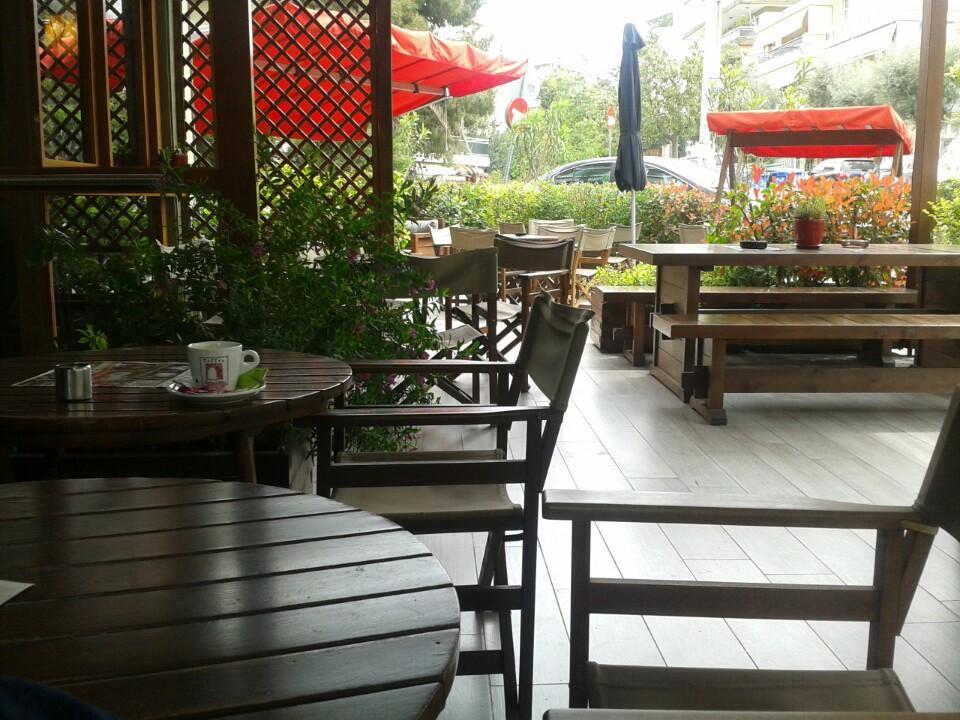 Tο πρώτο καφέ- μπαράκι που άνοιξε τον χορό της νέας πιάτσας επί της Μεσογείων, έχει μεγάλο, ξύλινο μοναστηριακό τραπέζι και χρωματιστές πλαστικές καρέκλες στον εξωτερικό του χώρο, όπου πιάνουμε θέση για να απολαύσουμε ωραιότατο καφεδάκι, πρωινά με λαχταριστές ομελέτες και άλλα ιδιαίτερα σνακ.