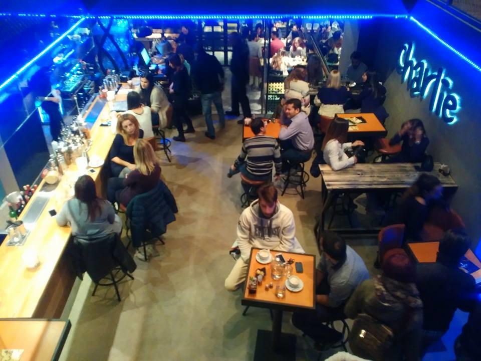 Ξεδιπλώνεται σε δύο επίπεδα, αγαπά εξίσου τον καφέ, τον… Τσάρλι Τσάπλιν, το φαγητό και το ποτό και η διακόσμησή του εμπνέεται από την εποχή της ποτοαπαγόρευσης. Το Charlie συνοδεύει το καφεδάκι μας με λαχταριστές επιλογές για πρωινό και χειροποίητα γλυκά, ενώ σερβίρει και φρεσκοστυμμένους χυμούς για την απαραίτητη ημερήσια δόση βιταμινών. Στα σνακ για τσιμπολόγημα… δεκατιανό περιλαμβάνονται μεταξύ άλλων μπρουσκέτες, samosas και spring rolls. Τα Σαββατοκύριακα αν το επισκεφθείτε βράδυ, το πιθανότερο είναι να πέσετε πάνω σε κάποιο live με εγχώριες μπάντες.