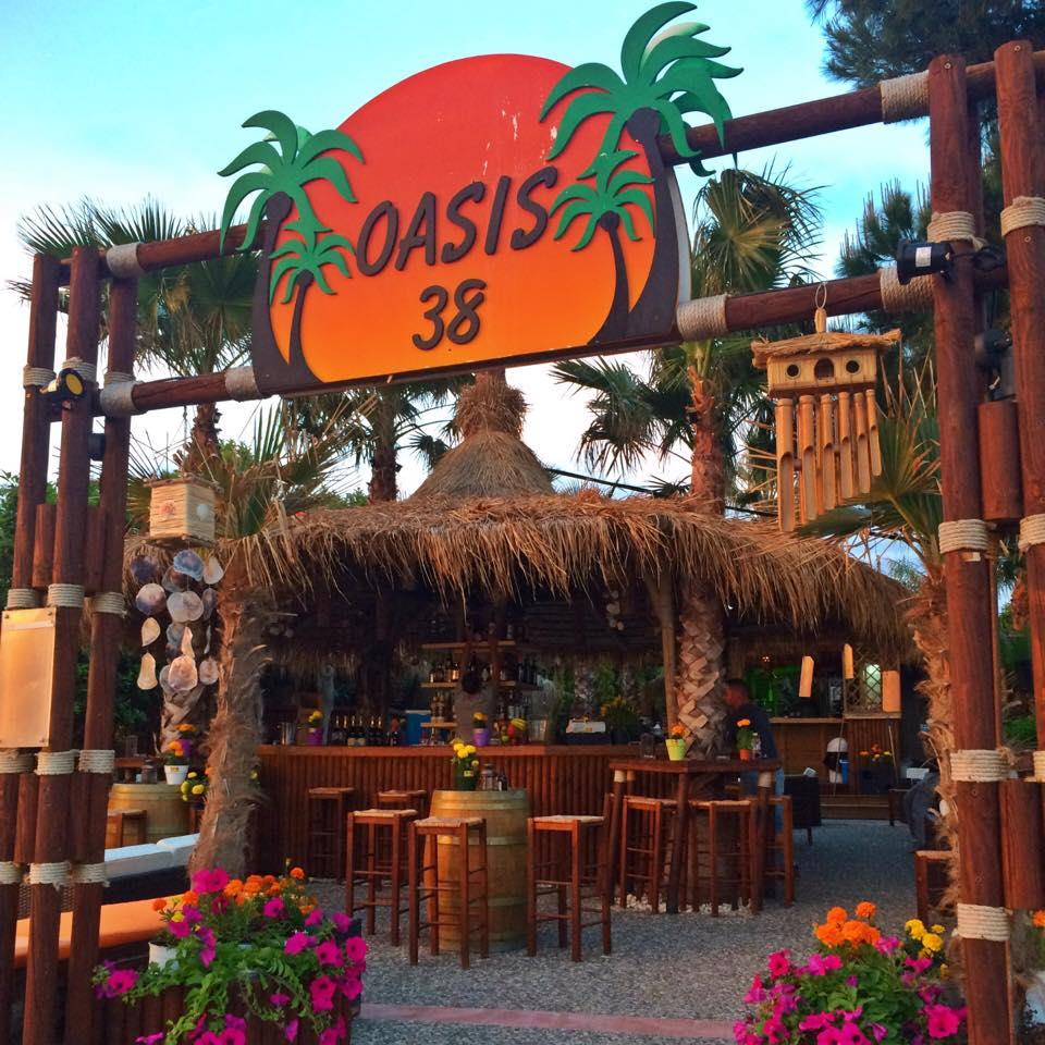 Εξωτικό όπως πρέπει, με γιγάντιους φοίνικες, καλαμένιες ομπρέλες και ψηλά σκαμπό πλάι σε βαρέλια κρασιού που λειτουργούν ως τραπεζάκια, το Oasis 38 βρίσκεται επάνω σε μια ωραιότατη αμμουδιά, με πεντακάθαρα νερά, παίζει σούπερ μουσικές μακριά από τα μέινστριμ μονοπάτια και σερβίρει με την ίδια άνεση καφεδάκια, παγωμένες μπύρες, καθαρά ποτά και καταπληκτικά κοκτέιλ (δοκιμάστε το Survivor, με βότκα, καρύδα, ανανά και πεπόνι) τα οποία κάθε Πέμπτη κοστίζουν μόνο 5€.