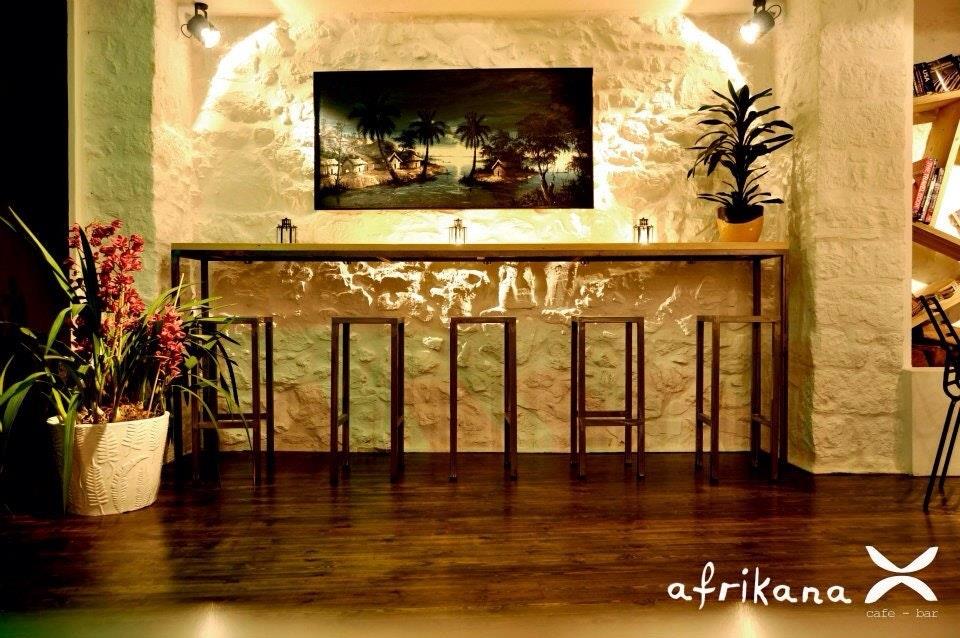 Afrikana Ιεροφαντών 13, Κεραμεικός Μουσικές, χρώματα και εικόνες της Αφρικής σε ένα από τα πιο ιδιαίτερα μπαρ στο Γκάζι, από το οποίο παρελαύνει σε καθημερινή βάση η ελίτ της τζαζ και της funk soul μουσικής σκηνής επί σκηνής. Η Αφρικάνα φιλοξενεί από την Τρίτη ως την Κυριακή (από τις 19.30 ως τα ξημερώματα) φοβερές live βραδιές, που προθερμαίνονται με ωραία jazz, afro, soul και funk DJ sets. Δείτε τις μπάντες που παίζουν αυτόν τον μήνα στο μαγαζί εδώ. Το απλό ποτό κοστίζει 7€, τα κοκτέιλ ξεκινούν από 8€.