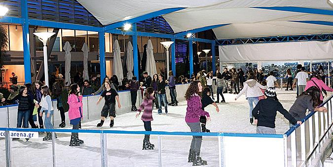 Kosmopolis Λεωφόρου Κηφισίας 73, Άγιος Θωμάς, Μαρούσι, πληροφορίες: 210 7514775 Ώρες λειτουργίας: Δευτέρα έως Παρασκευή 16.00-23.00, Σαββατοκύριακα 11.00-24.00 Τιμή: 10€ ανεξαρτήτως χρόνου παραμονής Καλυμμένο με τέντα για να μη σας πτοήσει καμία καιρική συνθήκη, συνολικού μήκους 250 τετραγωνικών μέτρων, το παγοδρόμιο του Kosmopolis είναι μία από τις καλύτερες επιλογές στα βόρεια προάστια. Το παγοδρόμιο θα παραμείνει ανοιχτό έως τα τέλη Απριλίου 2014.