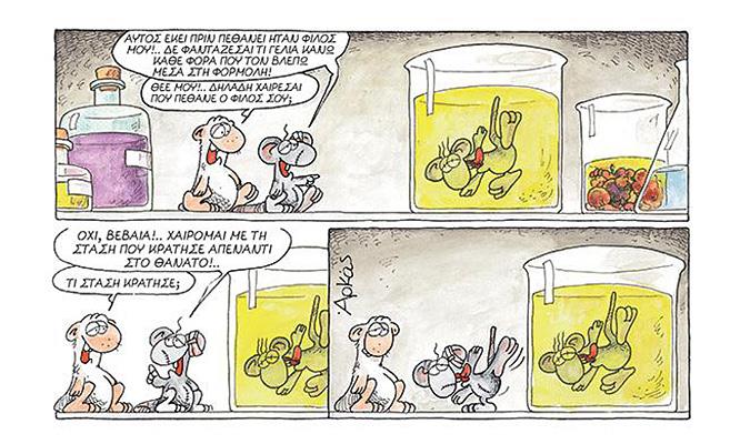 Το λιοντάρι του Παντελή Το λιοντάρι στο ζωολογικό κήπο που δουλεύει ο Παντελής δεν είναι ένα οποιοδήποτε λιοντάρι. Είναι ένα ευφυές, πολιτικοποιημένο και ειρηνιστικό λιοντάρι. Που θέλει την ελευθερία του. Το πρόβλημα είναι ότι ο Παντελής είναι ένας απλός, μισθοσυντήρητος και ευθυνόφοβος υπάλληλος που δε λέει να το ελευθερώσει. Και ο πάνθηρας επιμένει πως πρέπει να τον βγάλουν απ’ τη μέση. Ίσως η πιο υποτιμημένη σειρά του Αρκά, δημοσιεύτηκε για πρώτη φορά το 1987 στο περιοδικό Σχολιαστής.