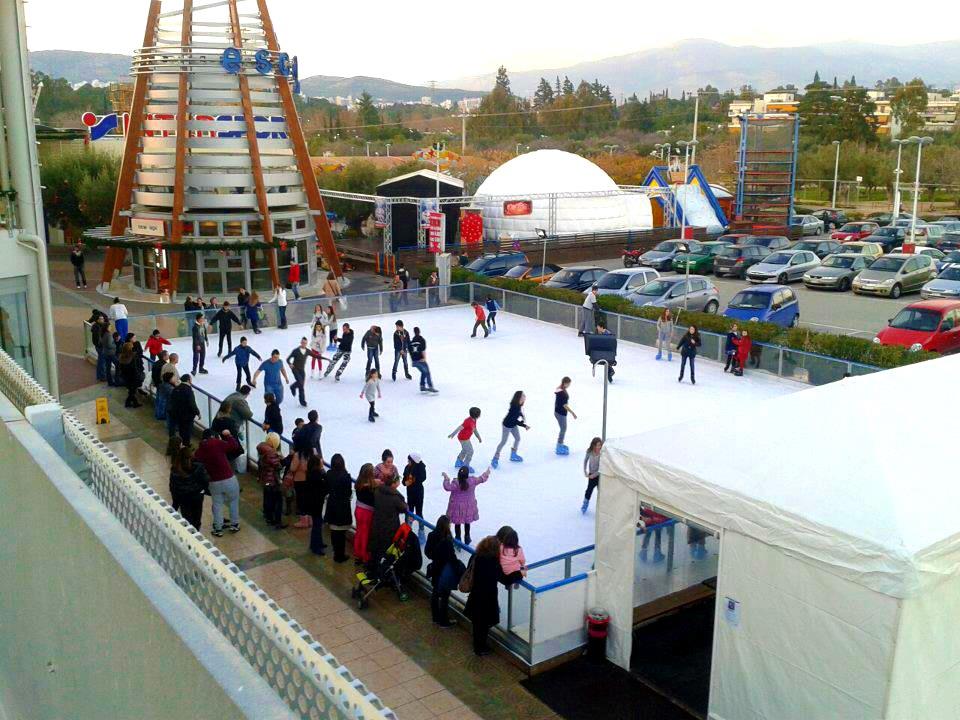 VILLAGE shopping & more Στον προαύλιο χώρο του «VILLAGE shopping and more…», δίπλα από τις καφετέριες, τα εστιατόρια και τον παιδότοπο του εμπορικού κέντρου, φιγουράρει το παγοδρόμιο με την παγοπίστα έκτασης 400 τ.μ., καλυπτόμενη πλήρως από τέντα για τις δύσκολες καιρικές συνθήκες. Σινεμά, ψώνια και… σλάλομ λοιπόν, καθημερινές από τις 16.00 μέχρι τις 23.00 και Σαββατοκύριακα από τις 11.00 μέχρι τις 24.00. Το κόστος εισόδου ανέρχεται στα 10€, με ενοικίαση παγοπέδιλων, ανεξαρτήτως παραμονής. Περισσότερα εδώ.