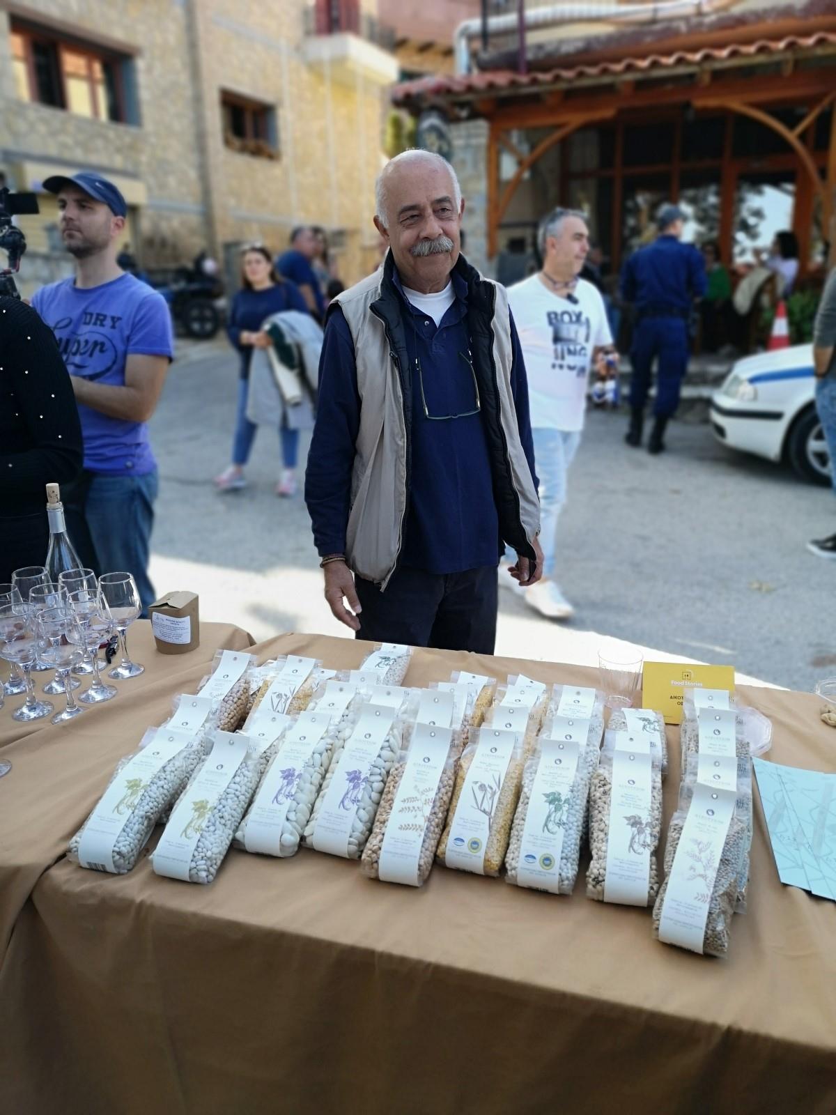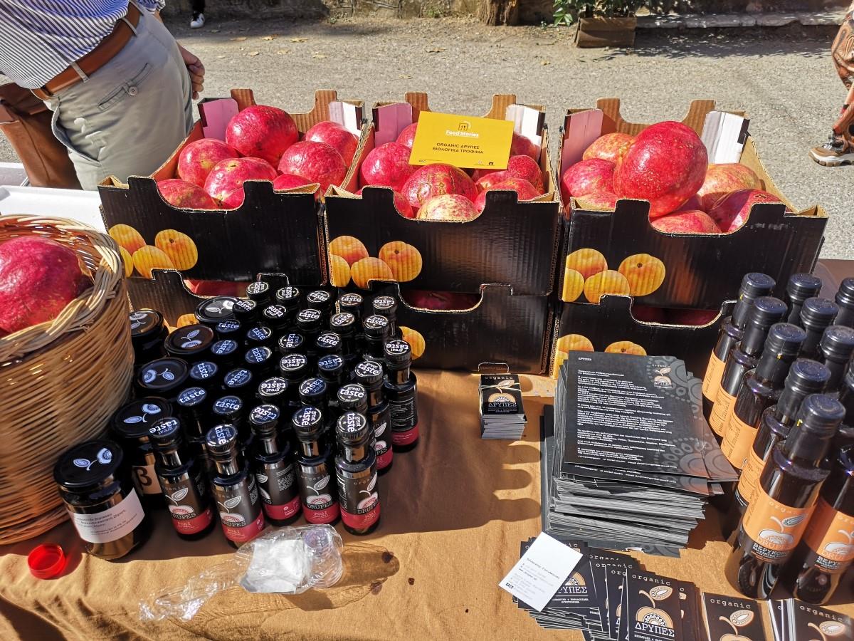 Την ίδια ώρα στον πάγκου του Mythical Earth μιας μικρής οικογενειακής επιχείρησης που ασχολείται με την παραγωγή εποχιακών λαχανικών, καρυδιών και οσπρίων στην Στυμφαλία είχε μαζευτεί πολύς κόσμος που ρωτούσε τα πάντα για τα χειροποίητα προϊόντα του.