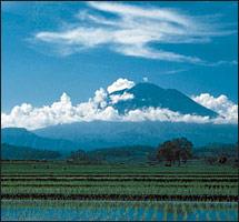 Από τα πρώτα στοιχεία που συναρπάζουν τον ταξιδιώτη στο Μπαλί είναι τα βουνά και τα ηφαίστειά του. Το υψηλότερο σημείο στα ανατολικά του νησιού, το Mount Agung (στα 3.142μ. υψόμετρο), φιλοξενεί ένα ενεργό ηφαίστειο που έκανε εμφανή την παρουσία του τον Μάρτιο του 1963. Στα νότια η γη κατηφορίζει σχηματίζοντας μία προσχωσιγενή πεδιάδα που καταβρέχεται από ρηχά ποτάμια, τα οποία στεγνώνουν την ξηρή εποχή, από τον Απρίλιο έως τον Σεπτέμβριο. Αυτή είναι, άλλωστε, και η καλύτερη εποχή να επισκεφτεί κανείς το νησί, αφού τότε ο καιρός είναι ηλιόλουστος, η υγρασία λιγότερη από ποτέ και οι βροχές που ξεσπούν κατά διαστήματα είναι πραγματικά αναζωογονητικές. Όσο για τα βραδιά, το κλιματιστικό πραγματικά δεν είναι απαραίτητο, αφού ένα δροσερό θαλάσσιο αεράκι εισβάλλει σχεδόν πάντα από τα bamboo παράθυρα, χαρακτηριστικά της μπαλινέζικης αρχιτεκτονικής.