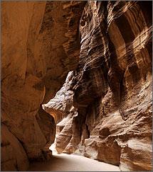 Το φαράγγι είναι μακρύ. Οι σκέψεις σου, που ξεκινάνε να τρέχουν αλλού μετά τα πρώτα 100 μέτρα, όταν το βλέμμα συνηθίσει το δέος και τους χρωματισμούς των βράχων, διακόπτονται από τους περίεργους σχηματισμούς τους –ένας βράχος ψάρι, μετά ένας ελέφαντας– κι από τις υδροροές που είναι σκαμμένες ανάμεσά τους. Ο δεύτερος λόγος για τον οποίο οι Ναβαταίοι επέλεξαν αυτήν την αφιλόξενη γωνιά της Νότιας Ιορδανίας για να χτίσουν την πόλη τους. Τα βράχια της μπορούσαν να σκαλιστούν εύκολα, και χάρη στις γνώσεις υδραυλικής που κατείχαν, μπορούσαν να μεταφέρουν και να αποθηκεύσουν ζωογόνες ποσότητες βρόχινου νερού στην άνυδρη γη τους.