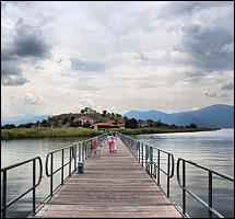 Φτάνοντας στην κεντρική όχθη της Μικρής Πρέσπας μας υποδέχονται οι ντόπιοι καλλιεργητές με τους πάγκους τους γεμάτους από κάθε είδους φασόλια -οι Πρέσπες φημίζονται για τα ξερά φασόλια τους- και διάφορα άλλα τοπικά προϊόντα, θυμίζοντάς μας τον πλούτο της ελληνικής γης που ειδικά αυτήν την εποχή στην βόρεια Ελλάδα βρίσκεται στο ζενίθ της. Στην μέση της -προστατευμένης από τη Διεθνή Σύμβαση Ramsar- Μικρής Πρέσπας επιπλέει το μικρό νησάκι Άγιος Αχίλλειος, το οποίο εδώ και μερικά χρόνια αποτελεί το κέντρο των εκδηλώσεων «Πρέσπεια» με σημαντικές συναυλίες κάθε καλοκαίρι. Η πρόσβαση στο νησί είναι πανεύκολη και διασκεδαστική, καθώς αυτό ενώνεται με την ηπειρωτική γη με μία φαρδιά, πλωτή πεζογέφυρα, η οποία σου δίνει την εντύπωση ότι περπατάς σχεδόν πάνω στο νερό, δίπλα στις πάπιες και τις βάρκες, κάτω από ιπτάμενους πελεκάνους, στην μέση του παντού και του πουθενά.