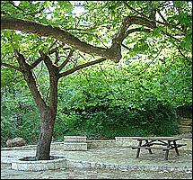 Συνεχίζουμε προς τα Μεσαία Τρίκαλα, και το σκηνικό αρχίζει να αλλάζει. Πολύχρωμες, ξύλινες ταμπέλες δείχνουν το δρόμο για παραδοσιακούς ξενώνες, γραφικά ταβερνάκια και ζεστά café, σχεδόν σε κάθε στροφή του δρόμου, ο οποίος καταλήγει σε μια μεγάλη, πλακόστρωτη πλατεία. Ακριβώς κάτω από αυτήν, η εκκλησία της Μεταμόρφωσης, που χρονολογείται από το 1816, αποτελεί το κυριότερο αξιοθέατο του χωριού.