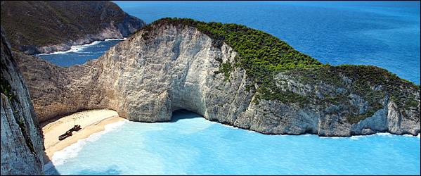 Ναυάγιο, Ζάκυνθος Πείτε ό,τι θέλετε. Ναι, είναι εμπορευματοποιημένο, χιλιοφωτογραφημένο κι υπερπροβεβλημένο. Διεκδικεί επάξια μια θέση στο παγκόσμιο πάνθεον των κλισέ φωτογραφιών. Τα νερά του, όμως, είναι υπέροχα τιρκουάζ, η άμμος του κατάλευκη, και τα θεόρατα βράχια που υψώνονται από πάνω του κάνουν το τοπίο απόκοσμο. Ατμόσφαιρα που ενισχύεται από το κουφάρι του πλοίου που μετέφερε λαθραία τσιγάρα και ναυάγησε εδώ το 1983, χαρίζοντας στην παραλία το όνομά της. Το καραβάκι που θα σας φέρει εδώ από τον Άγιο Νικόλα Βολιμών ή το Πόρτο Βρώμη, θα σας αφήσει, αν θέλετε, να βουτήξετε στα τιρκουάζ νερά και να βγείτε κολυμπώντας στην παραλία, για έξτρα αίσθηση… ναυαγίου.