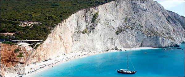 Πόρτο Κατσίκι, Λευκάδα Οι παραλίες της Λευκάδας είναι εκείνες που έρχονται συχνότερα στο μυαλό όταν μιλάμε για Ιόνιο. Το Πόρτο Κατσίκι όμως είναι τόσο sui generis, που θα μπορούσε κάλλιστα να παίζει εκτός συναγωνισμού: δεν είναι παραλία, είναι εθισμός. Τα μεγάλα, ολόλευκα βότσαλά του κάνουν το τιρκουάζ του Ιονίου ακόμη πιο φαντασμαγορικό. Ειδικά στα ρηχά, κοντά στην παραλία, όπου η αντανάκλασή τους στο νερό είναι πιο έντονη, δημιουργείται το εφέ της πισίνας. Οι σειρές με τις ξαπλώστρες μας χαλούν λίγο το τοπίο, αλλά αν αντέξετε να τις προσπεράσετε –και δεν θέλετε να βουτήξετε αμέσως μόλις κατεβείτε τα σκαλιά– στις άκρες της παραλίας υπάρχει άφθονος χώρος για να απλώσετε πετσέτα, και αρκετή σκιά στα πόδια των βράχων, όσο χαμηλώνει ο ήλιος.