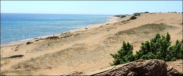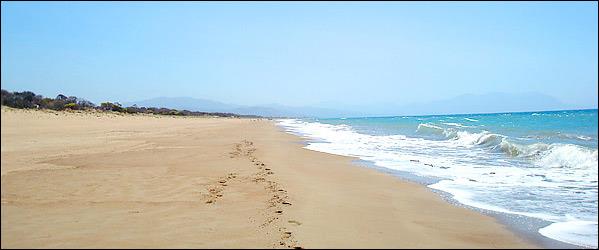 Καϊάφας, Ηλεία Ακόμη και χωρίς το πράσινο πλαίσιό της, το πανέμορφο πευκοδάσος που χάθηκε στις φωτιές του 2007 και αναγεννιέται από τις στάχτες του με αργούς ρυθμούς, παραμένει μια από τις καλύτερες παραλίες της Ελλάδας. Πενήντα ολόκληρα χιλιόμετρα χρυσαφένιας άμμου, από τη μια άκρη της Ηλείας ως την άλλη, σχηματίζουν αμμόλοφους γεμάτους λευκά κρινάκια, πίσω από τους οποίους διακρίνεται το ιόνιο τιρκουάζ των νερών της. «Καϊάφα» τη λέμε προς τιμήν του ωραιότερου σημείου της, εκείνου στο οποίο σταματά το τραίνο, απέναντι από την ομώνυμη λίμνη. Κάθε χωριό μπροστά από το οποίο περνά τη βαφτίζει, από εκεί και κάτω, με το δικό του όνομα. Μικρή σημασία έχει: όποιο και αν επιλέξετε να υιοθετήσετε, θα το ξεχάσετε στο τέλος της ημέρας, στη θέα ενός χρυσαφένιου ήλιου που βουτά στα νερά της.