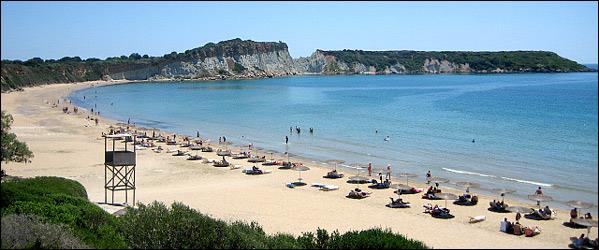 Γέρακας, Ζάκυνθος Από εδώ δύσκολα θα προλάβετε να δείτε το ηλιοβασίλεμα. Η παραλία κλείνει γύρω στις 19.00 το απόγευμα, για να αφήσει τις γλυκύτατες Καρέττες, που την επιλέγουν για να φτιάξουν τις φωλιές τους, στην ησυχία τους –και πολύ καλά κάνει. Ελάτε νωρίς, για να έχετε όλο τον χρόνο μπροστά σας να απολαύσετε την χρυσαφένια άμμο και τα κρυστάλλινα, ρηχά νερά της. Πριν την είσοδό σας, θα ενημερωθείτε από τους εθελοντές του Θαλάσσιου Πάρκου σχετικά με τα χελωνάκια, τις φωλιές και την ωοτοκία τους. Περπατήστε με προσοχή, μακριά από την ειδική σηματοδότηση, για να μην τα ενοχλήσετε.
