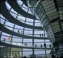 Πολύ κοντά βρίσκεται το Reichstag, που στεγάζει κάτω από τον γυάλινο θόλο του το γερμανικό Κοινοβούλιο, όπως και η «Πύλη του Βραδεμβούργου», κτίσμα-σύμβολο της πόλης με μεγάλο ιστορικό αλλά και αρχιτεκτονικό ενδιαφέρον. Βαδίζοντας την Ebertstrasse προς τα συγκεκριμένα αξιοθέατα, το βλέμμα σου τραβάει το μνημείο του Ολοκαυτώματος, αφιερωμένο σε όλους τους Εβραίους της Ευρώπης που έχασαν τη ζωή τους. Αποτελούμενο από τσιμεντένια εξογκώματα ποικίλου ύψους, το μνημείο μοιάζει με λαβύρινθο ανισόπεδων τάφων, που υπενθυμίζουν άλλη μια σκοτεινή σελίδα της πρόσφατης ιστορίας. Αυθόρμητα θα θελήσετε να «παίξετε» κρυφτό στους διαδρόμους του μνημείου, αλλά προσοχή στους security που θα σπεύσουν να σας κάνουν παρατήρηση, καθώς δεν βρίσκεστε στην EuroDisney.  Απαραίτητη είναι η βόλτα στις υπαίθριες αγορές και στα παλαιοπωλεία της περιοχής. Το σκηνικό αλλάζει και πάλι στην λεωφόρο Ku’damm, όπου βρίσκεται ένα από τα μεγαλύτερα εμπορικά πολυκαταστήματα της Ευρώπης, το KaDeWe, που θα ικανοποιήσει την καταναλωτική ορμή σας. Αν οι τσιμπημένες τιμές σας σοκάρουν, έχετε ακόμη την επιλογή ενός ωραίου γεύματος στον λαχταριστό μπουφέ του τελευταίου ορόφου.